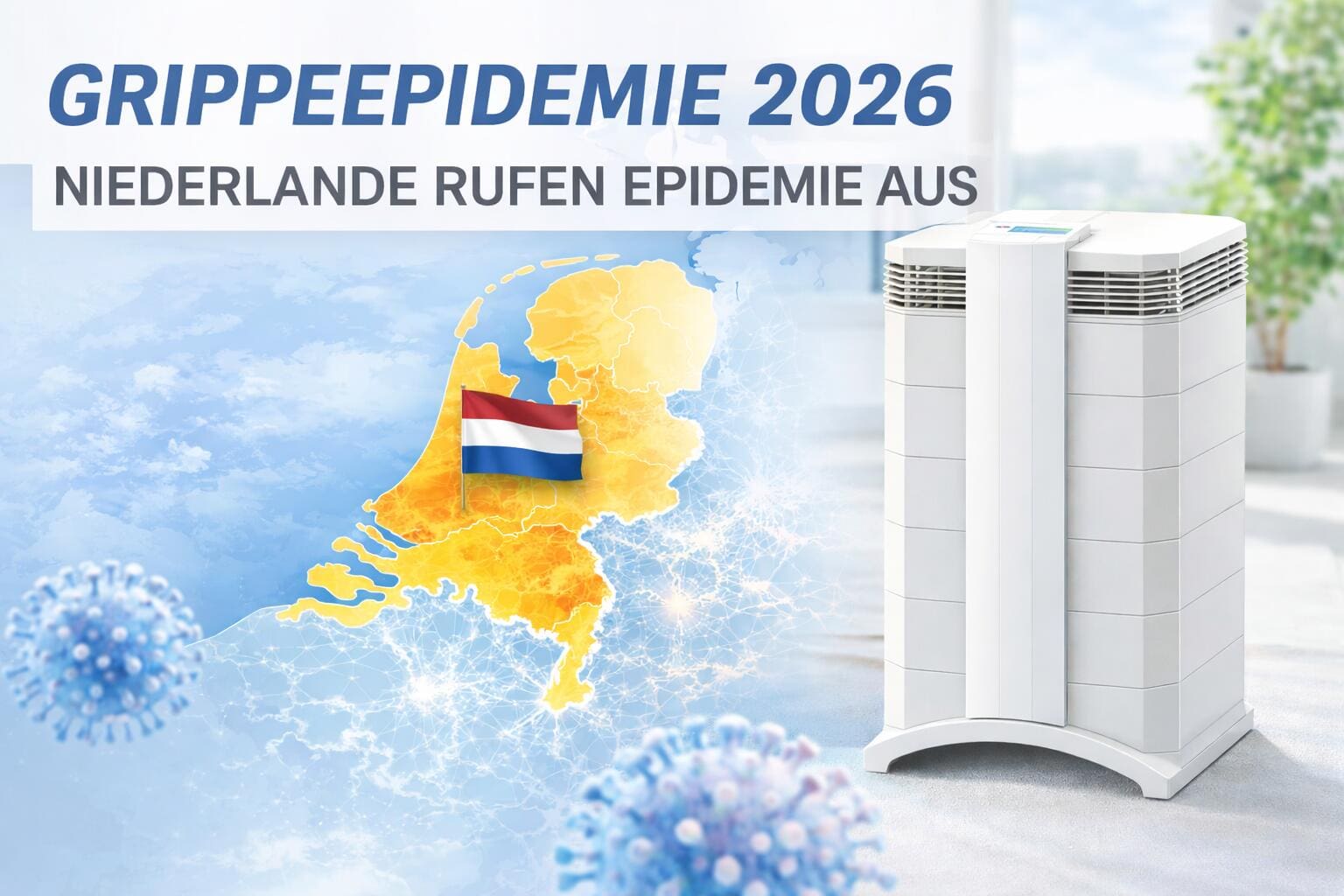 Neben der Grippe sind in dieser Saison laut RIVM auch andere Atemwegsviren aktiv – darunter saisonale Coronaviren, hMPV, das RS-Virus sowie Rhino- und Enteroviren. Das Influenzavirus dominiert zwar die aktuelle Grippeepidemie, doch mehrere Erreger tragen gleichzeitig zur hohen Zahl von Atemwegserkrankungen bei. SARS-CoV-2 wird derzeit nur in niedrigen Mengen nachgewiesen, während das RS-Virus dank neuer Immunisierung für Säuglinge weniger schwere Verläufe verursacht. Insgesamt zeigt sich: Die Atemwegssaison ist multifaktoriell – und ein weiterer Grund, warum gute Innenraumluft und professionelle Luftreiniger gerade jetzt so wichtig sind.