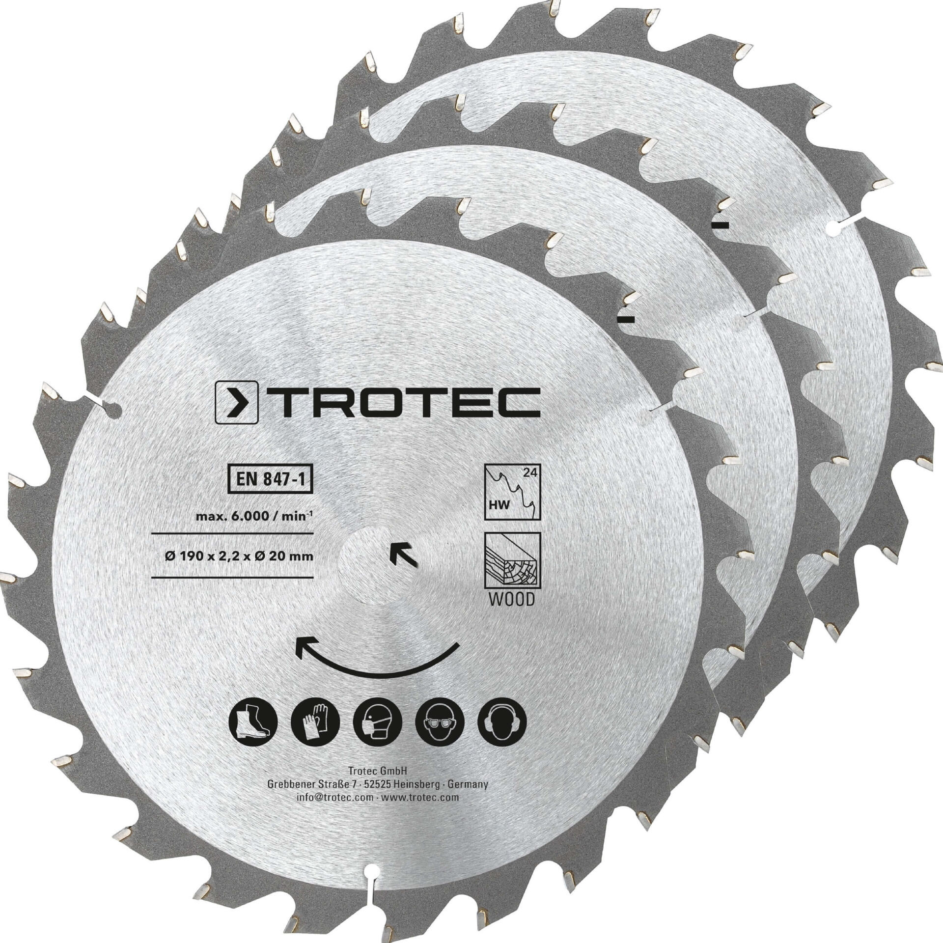 - Holzkreissägeblätter-Set Ø 190 mm (24 Zähne), 3-teilig