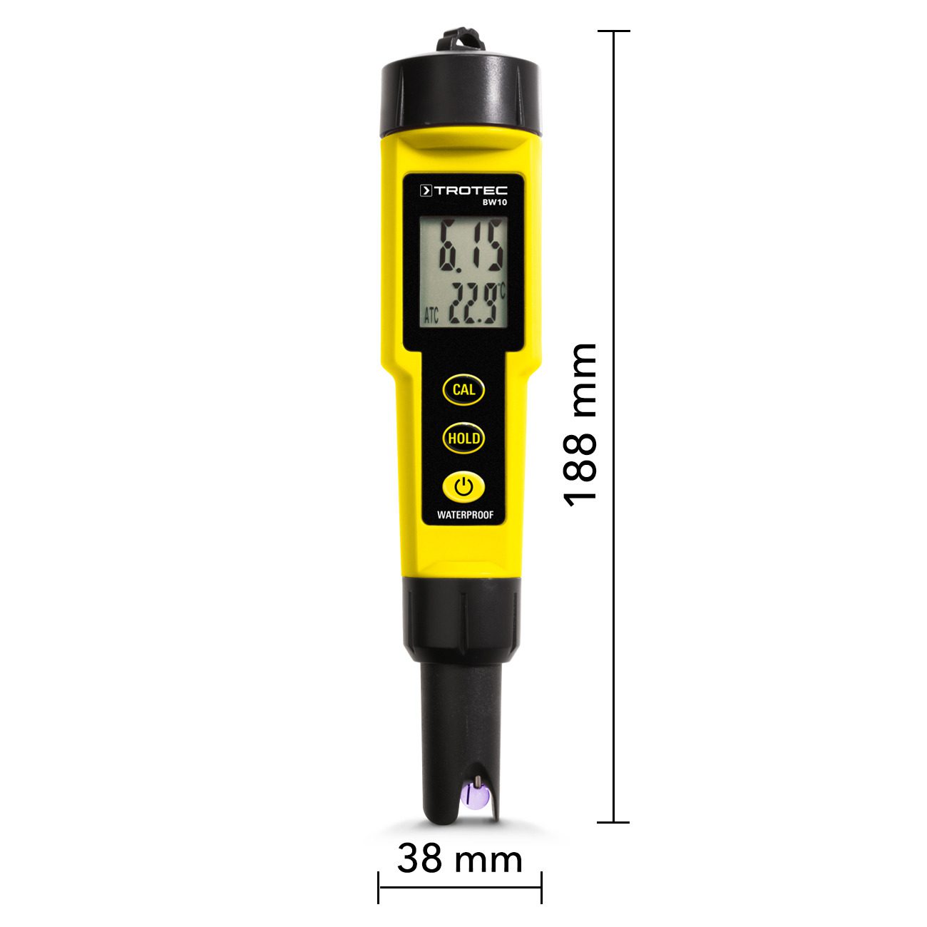 Dank automatischer Temperaturkompensation (ATC) garantiert das BW10 genaue Messungen über den gesamten Temperaturbereich von 0 bis 50 °C. Die werkseitig vorgenommene 3-Punkt-Kalibrierung ist bereits perfekt eingestellt, kann aber jederzeit mit dem mitgelieferten Pufferlösung-Set selbst kalibriert werden. Die auswechselbare pH-Elektrode ist robust konstruiert und wird durch eine praktische Schutzkappe vor Verschmutzung bewahrt – eine Investition, die lange hält.
