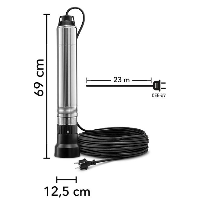 Die robuste Konstruktion der Tiefbrunnenpumpe TDP 370 E zeichnet sich durch ihre spezielle Bauweise aus, die auch in engen Bohrlöchern ab 15 Zentimetern Durchmesser problemlos einsetzbar ist. Das Edelstahl-Schmutzsieb filtert Schwebstoffe und Feststoffpartikel zuverlässig heraus, sodass nur sauberes Wasser gefördert wird. Mit einer maximalen Eintauchtiefe von 20 Metern und dem 23 Meter langen Stromkabel erreichen Sie selbst tiefe Brunnenanlagen mühelos. Der integrierte Thermoüberlastungsschutz und die IP68-Schutzklasse garantieren sichere und zuverlässige Dauerbetriebsfähigkeit.