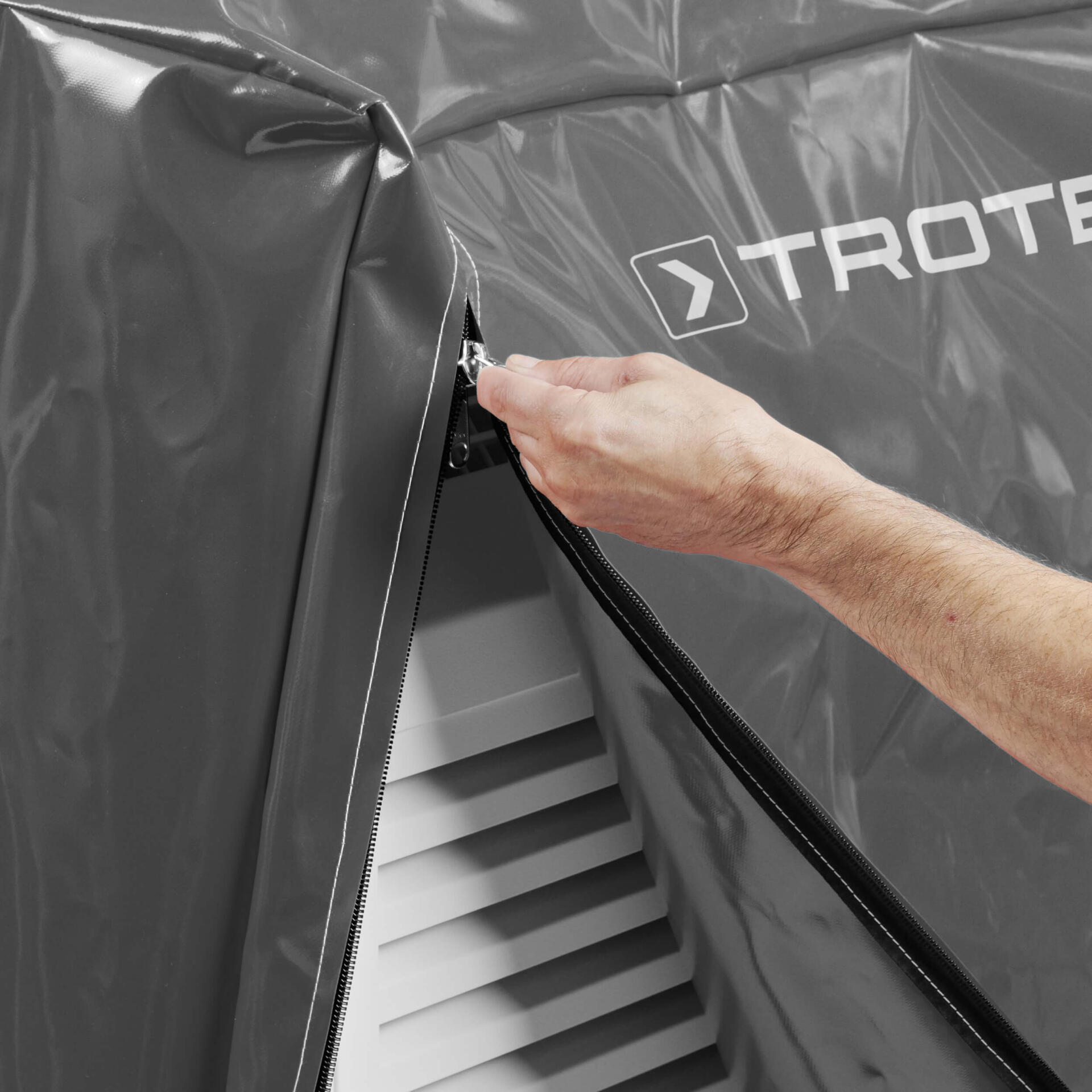Die praktische Ausstattung mit beidseitigem Doppelschieber-Reißverschluss ermöglicht problemlosen Zugang zu Ihrem Gerät, ohne die Schutzhülle komplett entfernen zu müssen. Das langlebige Material ist vollständig wasserdicht, resistent gegen Schimmelbildung und besticht durch seine hervorragende Reißfestigkeit – ideal für den ganzjährigen Einsatz.